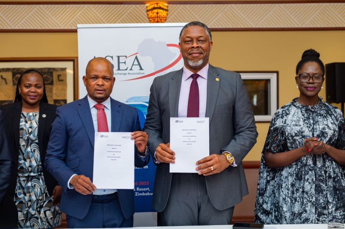 The Pan African Payment and Settlement System (PAPSS) and the African Securities Exchange Association (ASEA) have signed a Memorandum of Understanding (MoU) to enhance collaboration and cooperation in promoting cross-border payments of Capital Markets infrastructure in Africa. The MoU was signed on 14 April 2023 during the ASEA 2023 Building African Financial Markets Seminar held in Victoria Falls, Zimbabwe, which brought together Stock Exchanges and capital markets stakeholders from across Africa to discuss ways to deepen integration and connectivity of African capital markets.